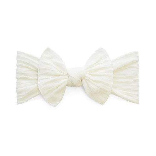 The bow is 4 inches in length, and the band having a 6.5 inch radius. This headband is suggested to be one size fits most.