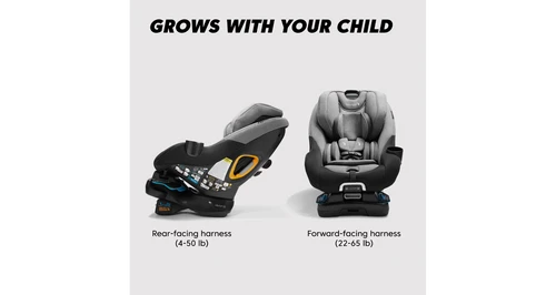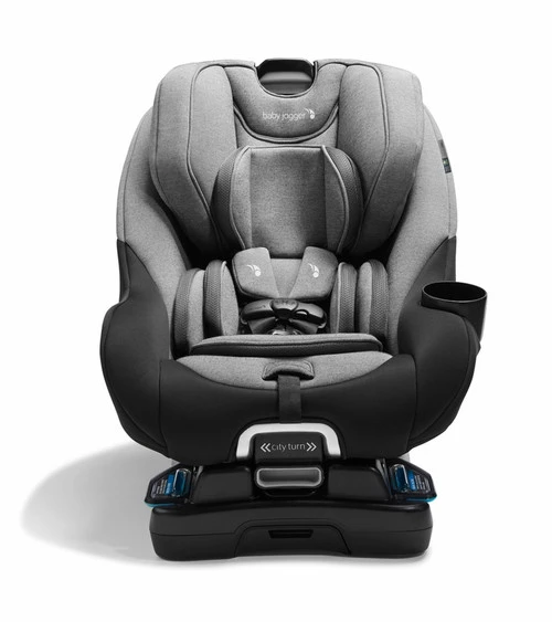 The Baby Jogger® City Turn™ Convertible Car Seat features a secure rotating mechanism that allows you to turn the seat 180 degrees with one hand while in rear-facing mode. The unique patented rotation brings your child 10 inches closer to you, and helps you maintain a more upright posture when lifting your child in and out and buckling them into the car seat. The seat smoothly rotates with one hand, then audibly clicks into place for assurance that it is safely secured. The car seat converts from rear-facing harness (4-50 lb) to forward-facing harness (22-65 lb) to grow with your child.