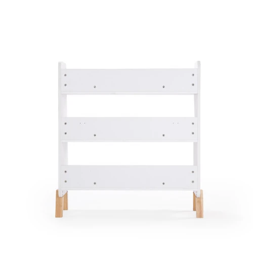 Keep your toddler’s most precious items within easy reach on the topple-safe, sturdy, and stylish Muse Bookshelf. Sweet solid wood legs with artisan’s joints add a natural craftsman flair to the classic white finish, and three strong, accessible-height shelves are ready to fill with toddler treasures.