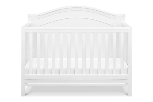 The polished Charlie 4-in-1 Crib features a graceful arched headboard with delicately carved molding and slim feet. The crib easily converts from crib to toddler bed, daybed and full-size bed.