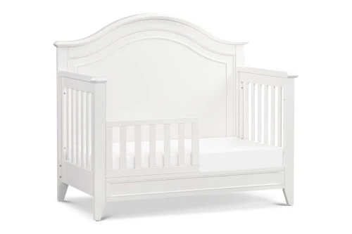 The Beckett 4-in-1 Curve Top Crib bridges the gap between traditional and modern design with its clean silhouette and thoughtful detailing. Featuring a raised back panel, simple tapered feet, and mitered cuts with contemporary 45 degree trimming, the Beckett Crib is a transitional piece that will grow with your family.