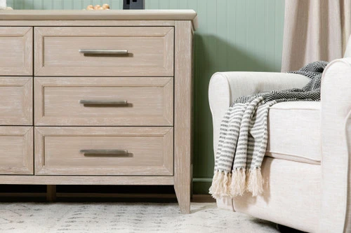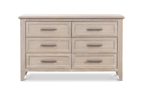 The Beckett 6-Drawer Dresser is the perfect accompaniment to the Beckett Crib, with its simple tapered feet, contemporary 45 degree trimming, and raised drawer panel molding. Dovetail construction drawers are fully extendable with self-closing, ball bearing glides for ease of use.