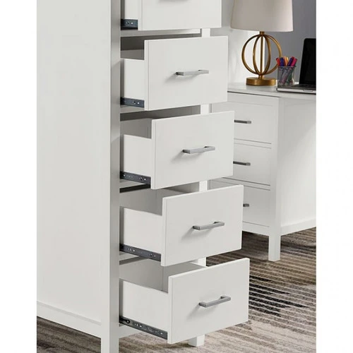 This may be the most efficient twin loft bed ever designed. And it’s cute! Sure, there are the standard upper bunk-style features such as the stationary ladder and guardrail but it’s also got a desk to sit at beneath, six spacious drawers, and an adorable scaled down mini dresser that offers three additional drawers. Splendid!