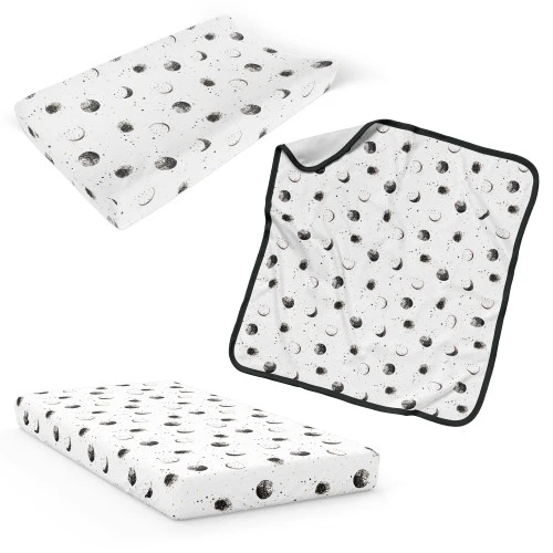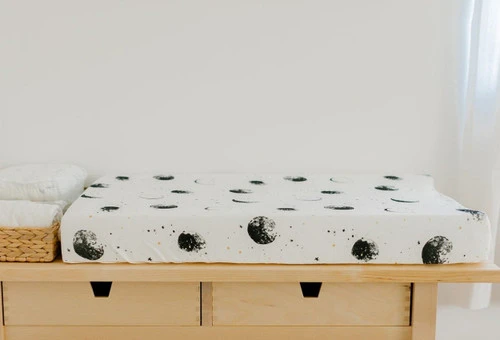 The GoumiKids starter set for your nursery includes an organic knit printed sheet, changing pad cover, and cozy blanket.