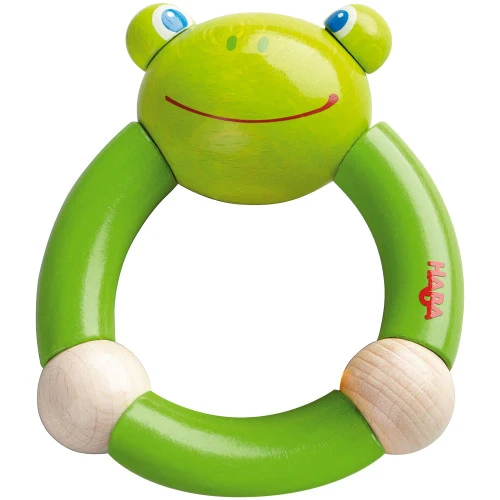 Your little one will be delighted with the Croaking Frog Clutching Toy from HABA! This adorable clutching toy features a brightly colored wooden frog friend! Made from maple and beech wood and colored with a water-based, non-toxic stain. Perfect for ages 10 months and up!