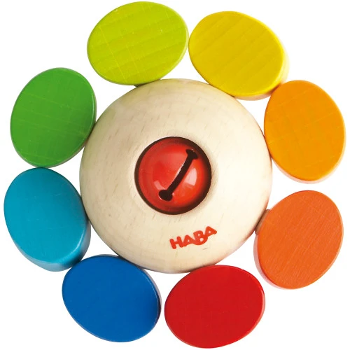 Keep your child entertained with the Whirlygig Clutching Toy from HABA! The movable wooden elements and little jingling bell are secured with a strong elastic band, expertly designed to help develop clutching and grasping skills. The Whirlygig is recommended for ages 6 months and up.