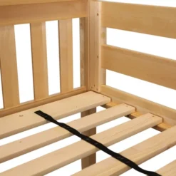 - Slatted bed ends make checking in at night easy. Includes upper slat roll.