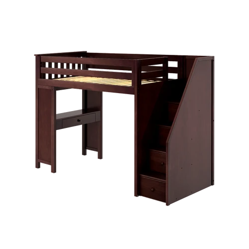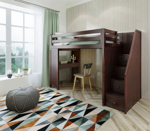 The Jackpot Kids Brighton All-In-One staircase loft bed has a place for everything and more! The built-in student desk tower provides a sturdy work area for those long nights of studying. Plus, each step of the staircase doubles as a drawer.