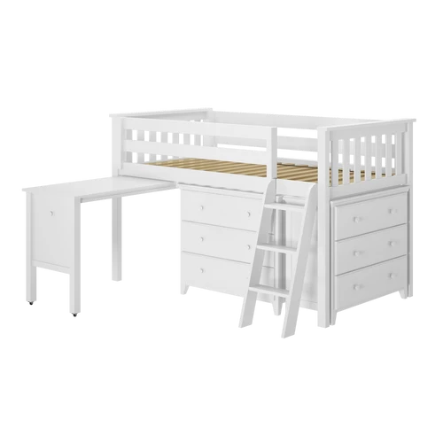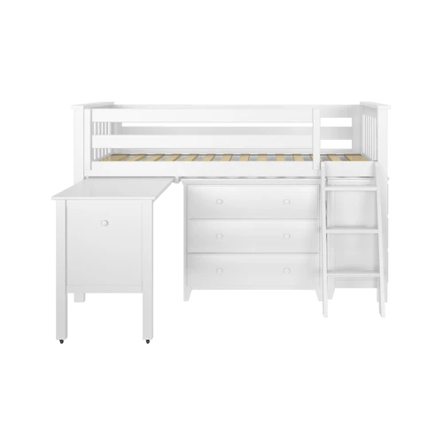If space is tight, the Jackpot Kids Windsor 3 twin low storage and study loft bed is just what you need! Featuring TWO 3 drawer dressers and a pull-out desk for studying that can easily be tucked back under the bed when not in use! Create a total sleep, storage and study solution for your kids’ bedroom and beyond.