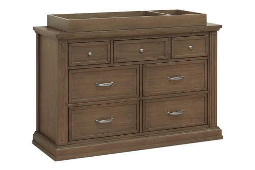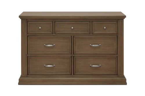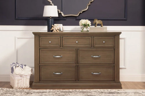 The Durham 7-Drawer Double Dresser combines thoughtfully designed molding with platform detailing, making it a bold complement to the Durham Crib. The dresser’s seven spacious drawers offer a stylized storage solution that will last beyond baby years.