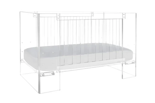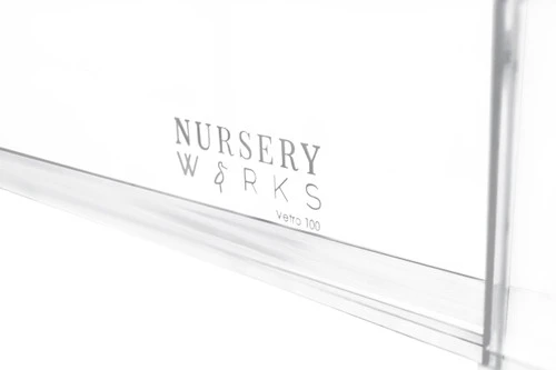A signature Nursery Works original and the first 100 percent recyclable, non-toxic acrylic crib on the market, the Vetro combines utility, purity and understated beauty. It is exclusively handcrafted and laser-etched with a unique limited edition number. Clear sides provide an unimpeded view of infant and nursery.