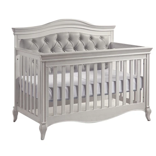 The Diamante Forever crib is an elegant reflection of classic Italian design paired with a beautiful diamond tufted vinyl panel tucked into the headboard.