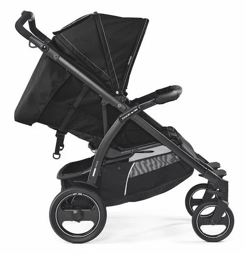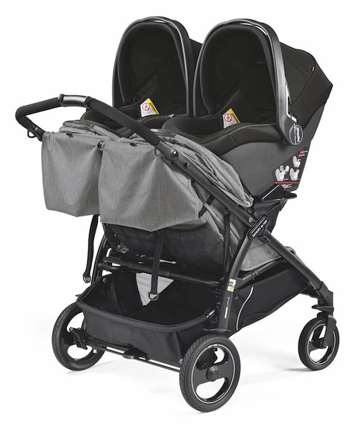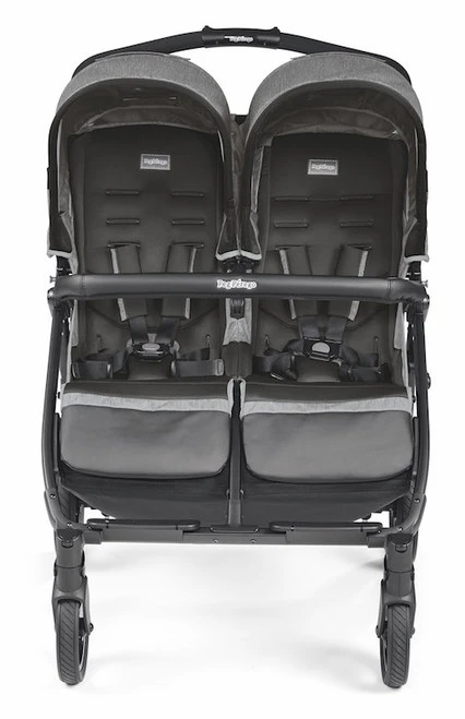 - Front bumper bar hinges open for easy access to both children. Outfitted in “Prima Classe” material.
