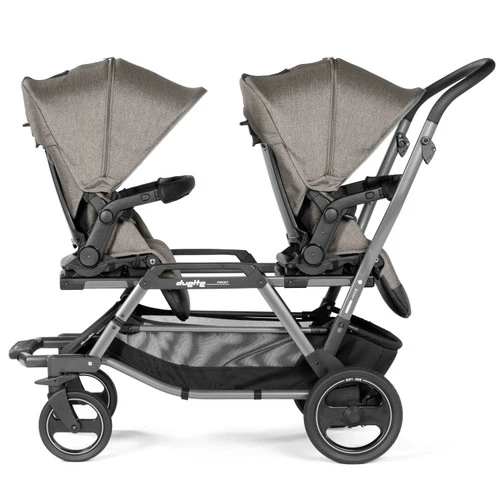 The Duette Piroet is extremely agile, with easy to use swivel front wheels, and allows mobility through most narrow places. It is travel system compatible with two Primo Viaggio car seats, and has an extra-large basket.