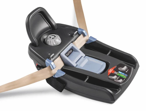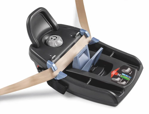- Base is equipped with an innovative system which easily and securely locks the base in place for added stability with either LATCH strap or vehicle’s seat belt.