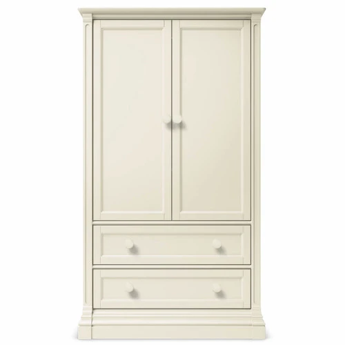 Imperio Armoire is a statement furniture piece, transforming any nursery into a furniture studio. The armoire offers a balanced mix of storage spaces with two drawers, an adjustable shelf behind the doors and a hanging rod for those fancy clothing photo sessions. The door cabinet space can be customized by adding another shelf or adjusting the height position. Imperio units are standardly equipped with round wooden knobs.
