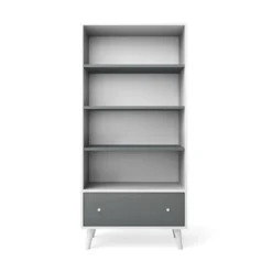 New York bookcase has a contemporary style with mid-century features, making it very functional and versatile. This unit can be used for clothing storage as well as books and other items for your growing child. Available in standard or two-tone finish as well as upgraded configurations like Laser-Cut Applique (Stripe or Circle Pattern) and Eco-Leather Inlay in Silver or Copper.