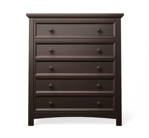 Serena Tall Chest is a storage ninja. This unit takes a minimum amount of floor space and offers a maximum amount of drawer storage. Tall and handsome and featuring five deep drawers equipped with hydraulic soft-closing systems. The Serena Chest is the ideal baby furniture solution for safe and healthy nurseries.