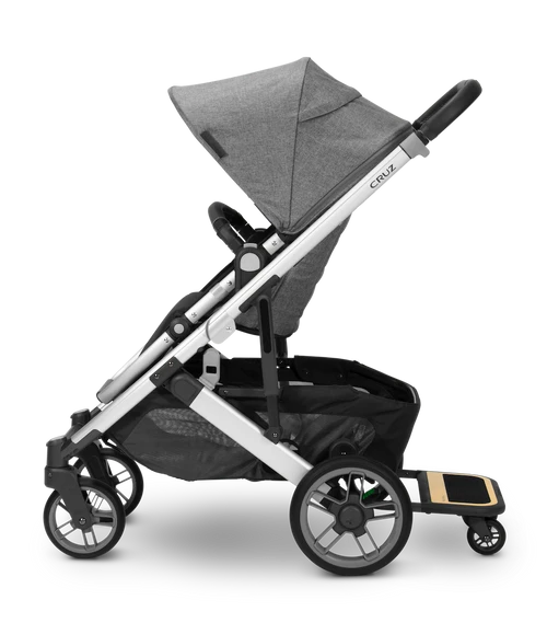 The PiggyBack ride along board easily attaches to the back of your CRUZ V2 stroller to allow your toddler to join in the stroll, even when they are too tired to walk on their own.