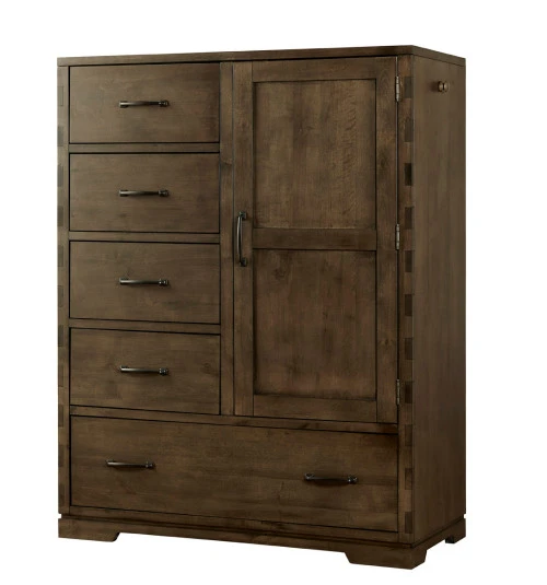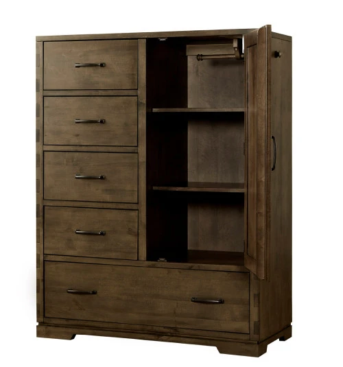 The Westwood Design Dovetail Chifforobe – Graphite is the perfect compliment to the Dovetail Collection, featuring stylish storage with its cabinet door and adjustable shelving. Paired with four smaller drawers and one large drawer at the bottom.