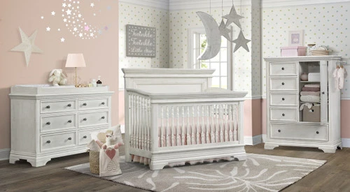 The Olivia Collection’s vintage styling and intricate molding detailing create and elegant yet playful look for your child’s room. Easily converts into a hutch or changing station.*