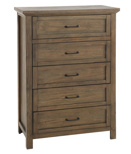 The Westfield 5 Drawer Chest by Westwood Design is perfect for creating a farmhouse-style nursery. Constructed with charming accents such as rustic hardware and a distressed finish, it is ideal for storing baby items, clothes, bedding, and more.